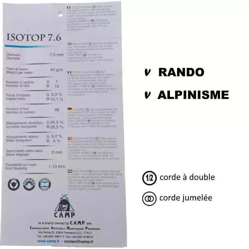 La corde rando 20 mètres Camp Isotop 7,6 mm Dry en détail :