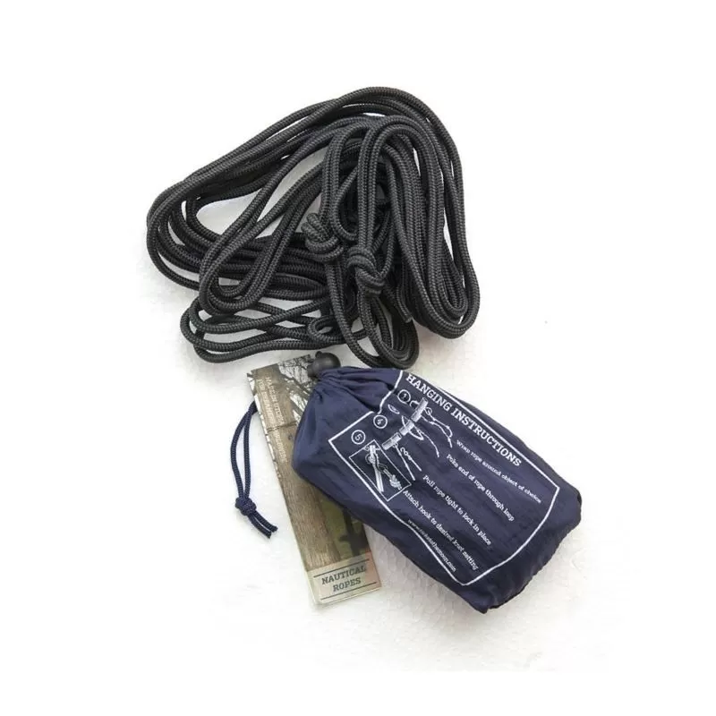 Léger, simple, solide, rapide d’utilisation, le kit de fixation Ticket To The Moon spécial hamac vous permet de gagner un temps précieux lors de l’installation de votre hamac. Il comprend une housse et deux cordes nautiques de 2,40 mètres chacune (diamètre : 6 mm). Chaque corde dispose d’une boucle (en bout de corde) et de plusieurs nœuds spécialement adaptés à votre hamac Ticket To The Moon. Attacher votre hamac n’aura jamais été aussi simple : enroulez la corde autour d’un arbre, d’un poteau ou autre, passez la corde dans la boucle, tendez, fixez le crochet du hamac sur le nœud désiré, puis répétez l’opération avec la deuxième corde afin d’attacher l’autre côté du hamac. Poids total de ce kit de fixation pour hamac : 200 grammes.