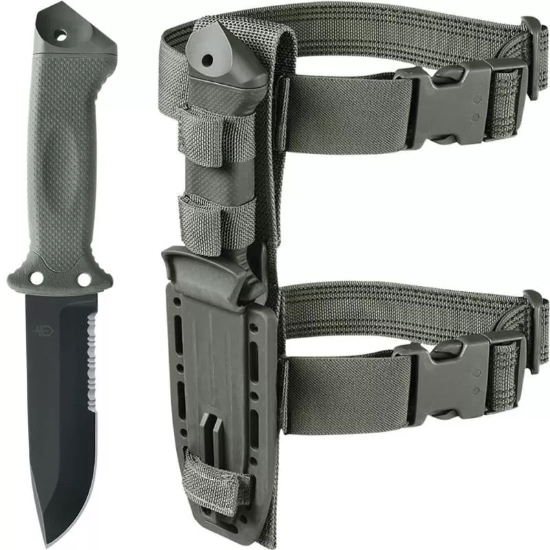 L’armée américaine l’a choisi et l’utilise. Et il n’y a pas de hasard. Le couteau Gerber LMF 2 possède l’un des meilleurs rapports entre puissance, polyvalence et robustesse. Il est autant doué pour la survie, pour les opérations spéciales ou pour les missions de sauvetage. Sur le terrain et en pratique, c’est un excellent couteau tactique, un excellent couteau militaire et un excellent couteau de survie : il sert à tout et il se transporte de plusieurs manières, toujours à portée de main grâce à son étui optimisé MOLLE avec affûteur intégré. Traité anti-reflet et de couleur vert armée, il reste discret en toute situation. Pour information, la signification des lettres LMF est la suivante : Lightweight Multi Functional.