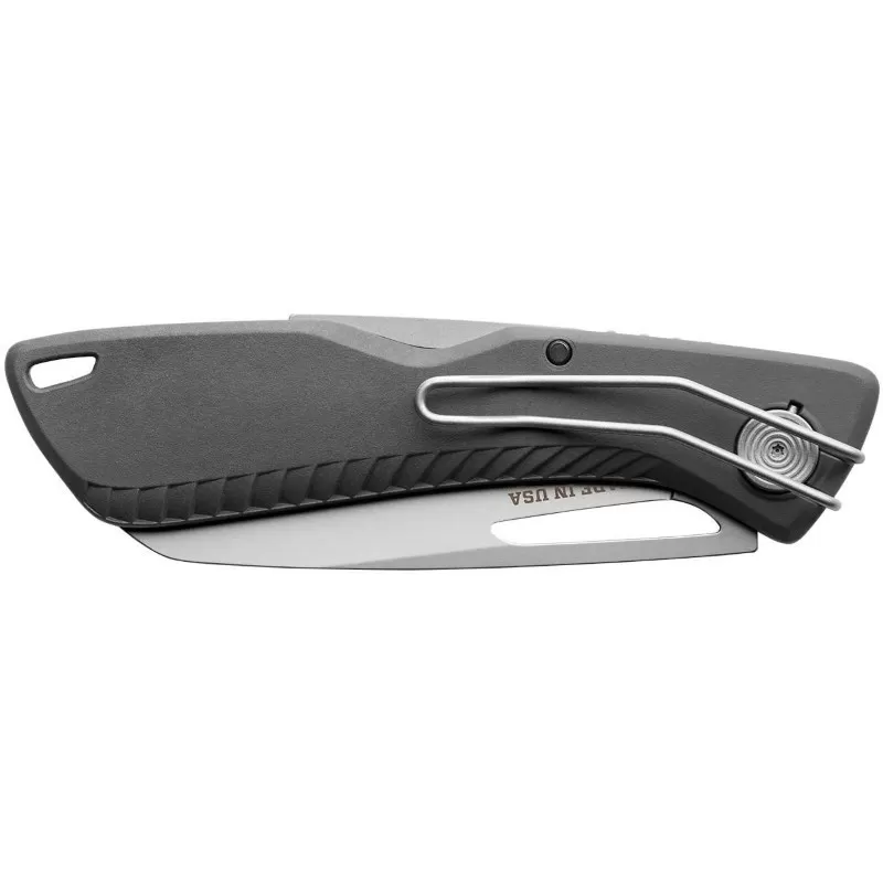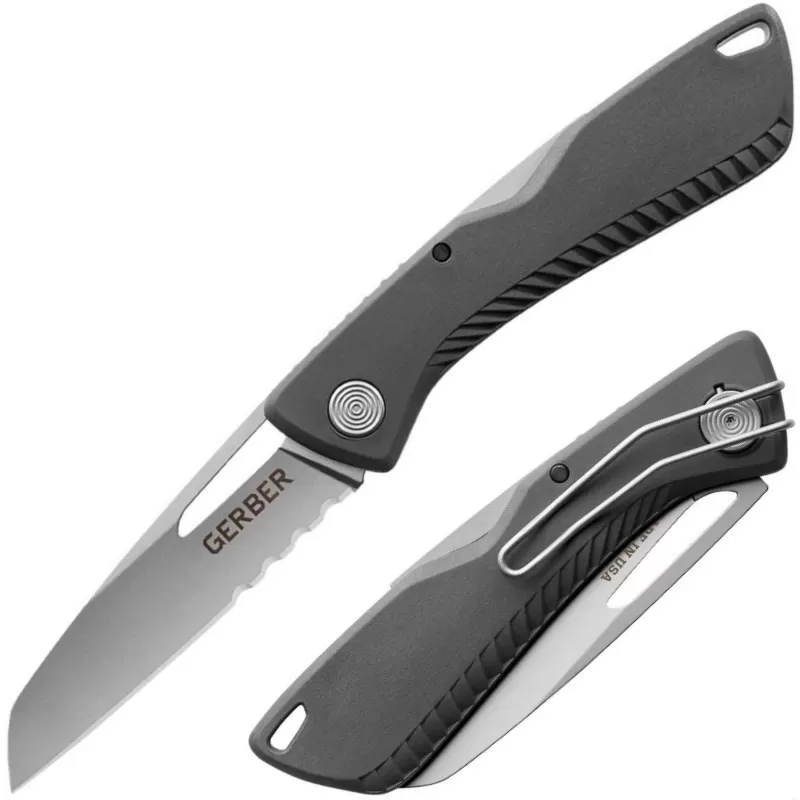 Dessiné et conçu sur le continent américain (USA), le Sharkbelly des établissements Gerber est ce que l’on peut appeler un couteau d’exception. Il est exceptionnel au niveau de son poids : il ne fait que 60 grammes. Il est exceptionnel au niveau de sa puissance : lame Drop Point (lame pointue et acérée) construite en acier inoxydable avec une partie dentée et une partie lisse. Il est exceptionnel au niveau de son maniement : couteau pliant ambidextre qui peut s’ouvrir indifféremment avec la main gauche ou la main droite et d’une seule main. Il est exceptionnel au niveau de sa sécurité de transport et de sa sécurité d’utilisation : son manche possède une attache-ceinture en métal ainsi qu’une texture anti-glisse « Requin » (le nom Sharkbelly n’est pas choisi au hasard) et sa lame possède un blocage automatique de sécurité.