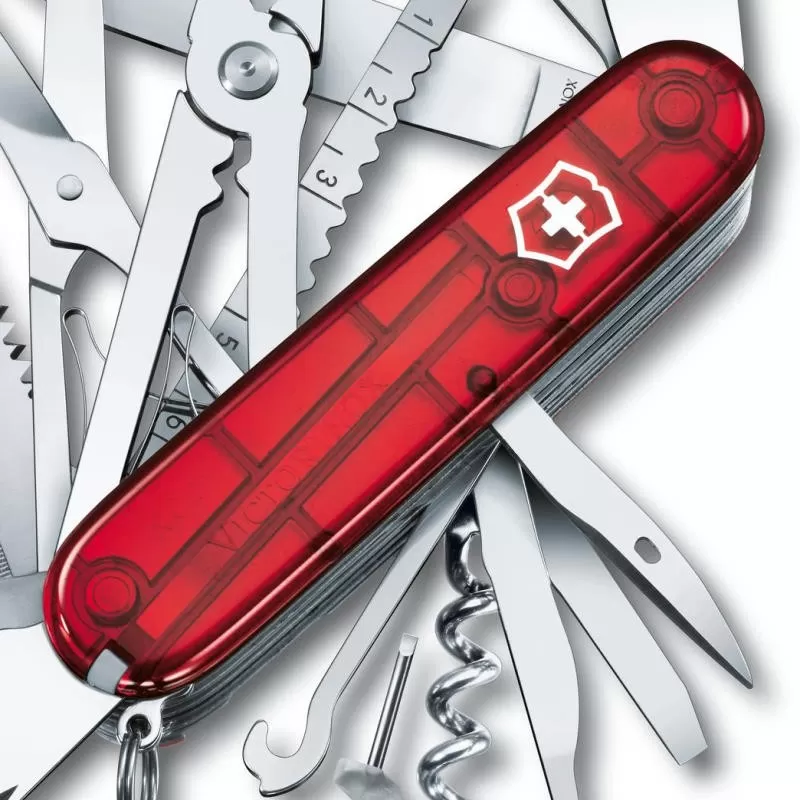 Le couteau suisse Victorinox Swisschamp rouge translucide en détail :