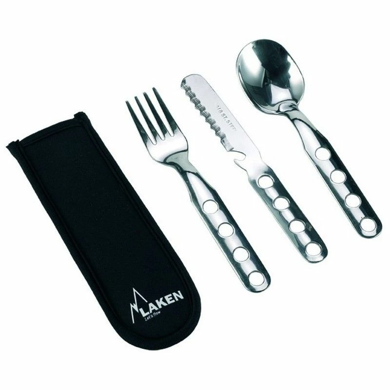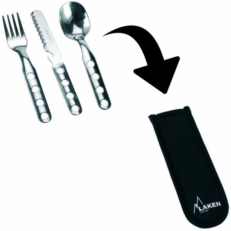 Indispensable dans votre popote, le kit couvert Inox 3 pièces signé Laken combine une fourchette, une cuillère et un couteau en inox avec ouvre-boîtes. Le tout se loge dans une housse néoprène (housse fournie). Remarque : le couteau intègre également un décapsuleur.