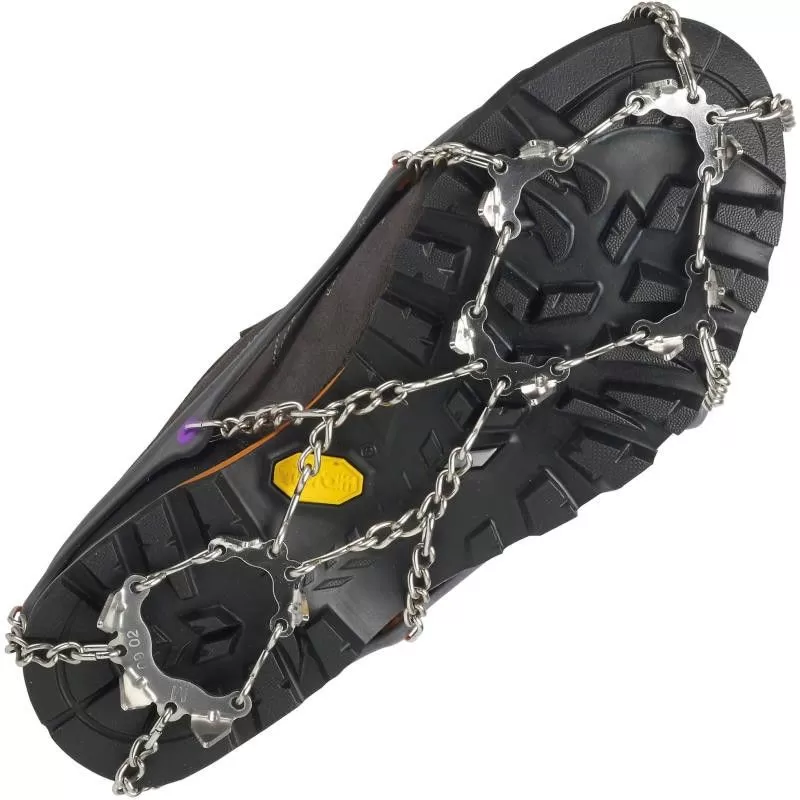 Un peu plus léger et un peu plus compact que le modèle Camp Ice Master, le modèle Camp Ice Master Light possède des chaînes et des dents optimisées et un peu plus petites, d’où la légèreté et la compacité résultantes. Du fait de leur format, de leurs performances et de leurs 13 dentelures, les crampons Camp Ice Master Light sont tout à fait recommandés pour la randonnée et le trekking sur tous les sentiers glissants (neige, glace ou verglas) et peu accidentés. En taille S (taille Small), ils s’adaptent facilement et sans outils à toutes les chaussures de marche en taille 36, en taille 37 ou en taille 38.