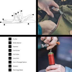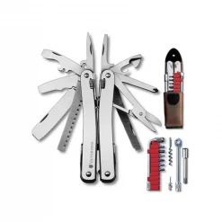 Comme mentionné précédemment, l’outil multifonction Wave Plus Leatherman dispose de 18 fonctions (outils auto-bloquants). En voici la liste exhaustive : une pince multifonction puissante, à la fois pince à bec effilé, pince normale, cisaille, coupe-fil et pince coupante pour fil dur, un couteau avec pointe à tracer, un couteau à lame mixte (lame semi-crantée, longueur : 7,3 cm), une scie à bois, une paire de ciseaux, un adaptateur pour petits et un adaptateur pour grands embouts, deux embouts réversibles, une lime à bois et à métal, une lime diamantée, un grand tournevis plat, une règle, un ouvre-boîtes, un décapsuleur, un dénude-fils électriques et un œillet pour le passage d’un cordon. Nul besoin d’activer la pince en cas d’utilisation de la lame : la lame s’ouvre de l’extérieur et d’une seule main. En résumé, acheter un outil multifonction Leatherman Wave Plus, c’est opter pour un outil ultra-polyvalent mais ne requérant qu’un petite place dans votre boîte à outils ou parmi votre matériel de randonnée, équipement de trek, vélo, VTT, camping, bivouac et autres aventures.