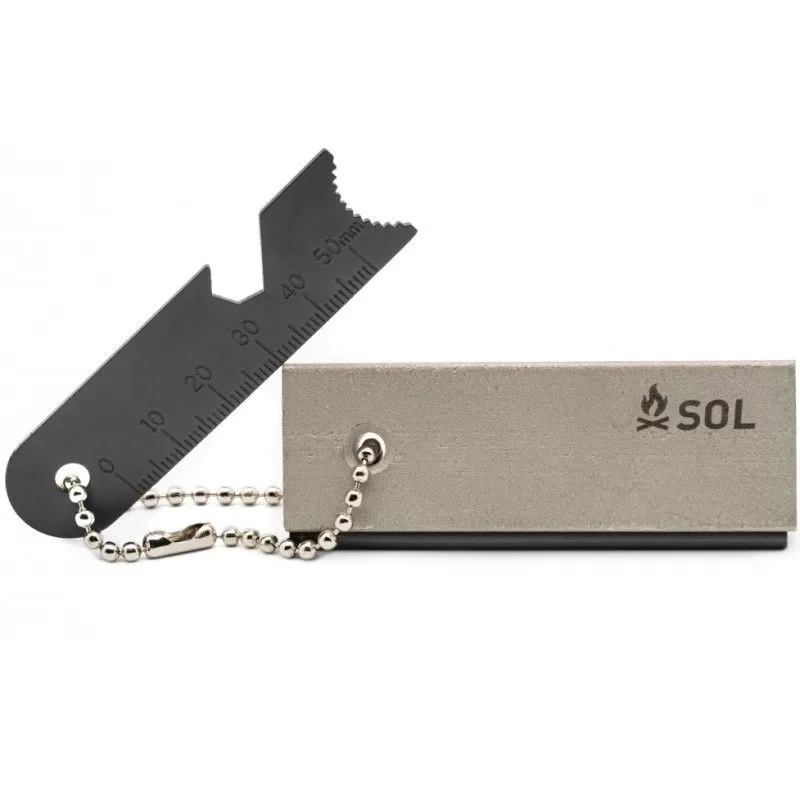 Concrètement, le bloc SOL Mag Block est composé de 3 éléments à la fois différents et complémentaires. Le premier élément, c’est le grattoir : cet élément permet de gratter la pierre à feu en ferrocérium (partie noire) ou le bloc de magnésium (partie grise) pour produire respectivement des étincelles ou des copeaux inflammables. Notez que le grattoir peut aussi faire office de décapsuleur ou de mesureur en millimètres. Le deuxième élément, c’est le bloc de magnésium : c’est cet élément qui permet de produire du combustible de démarrage, facilement inflammable avec quelques étincelles. Le troisième élément, c’est la pierre à feu en ferrocérium : c’est cet élément qui permet d’obtenir (par grattage) une pluie d’étincelles nécessaire à l’allumage de votre feu. L’ensemble reste remarquablement compact et léger : 80 (longueur) x 30 (largeur) x 10 (épaisseur) mm pour seulement 50 grammes. En résumé, c’est le bloc de magnésium de survie par excellence.
