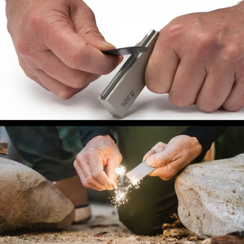 Avec une pierre à feu traditionnelle, on peut générer des étincelles afin d’allumer un feu, à condition d’avoir également de l’amadou ou des copeaux pour jouer le rôle de combustible de démarrage. Avec le Mag Block de chez SOL, on dispose à la fois d’une pierre à feu en ferrocérium (pour générer les fameuses étincelles) et d’un bloc de magnésium qui permet de produire à tout moment des copeaux de magnésium (combustible de démarrage). Bref, vous avez tout ce qu’il faut pour démarrer un feu dans les meilleures conditions, que vous soyez en situation de survie ou en plein trek. Bon à savoir : le bloc de magnésium SOL Mag Block continue de fonctionner même s’il a été mouillé ou trempé (il résiste à l’eau). Son autonomie est de plusieurs milliers de coups.