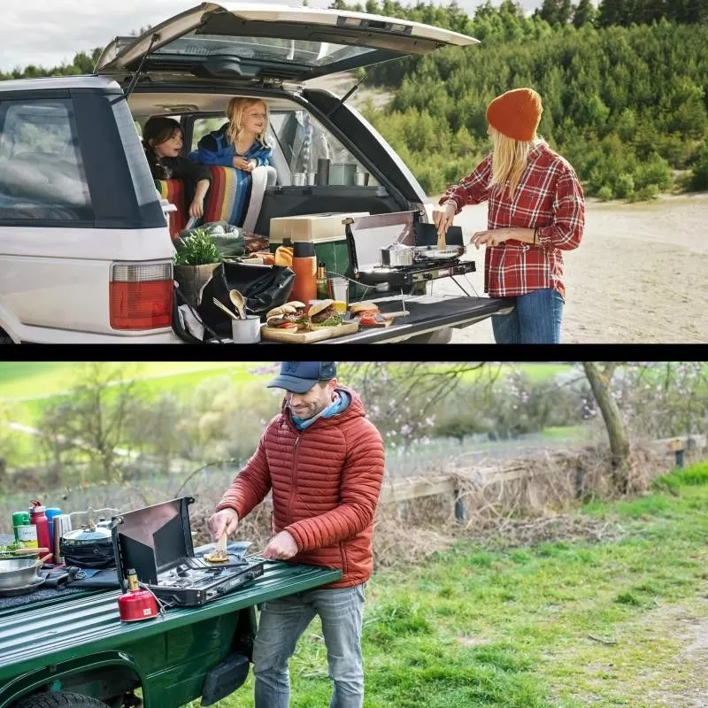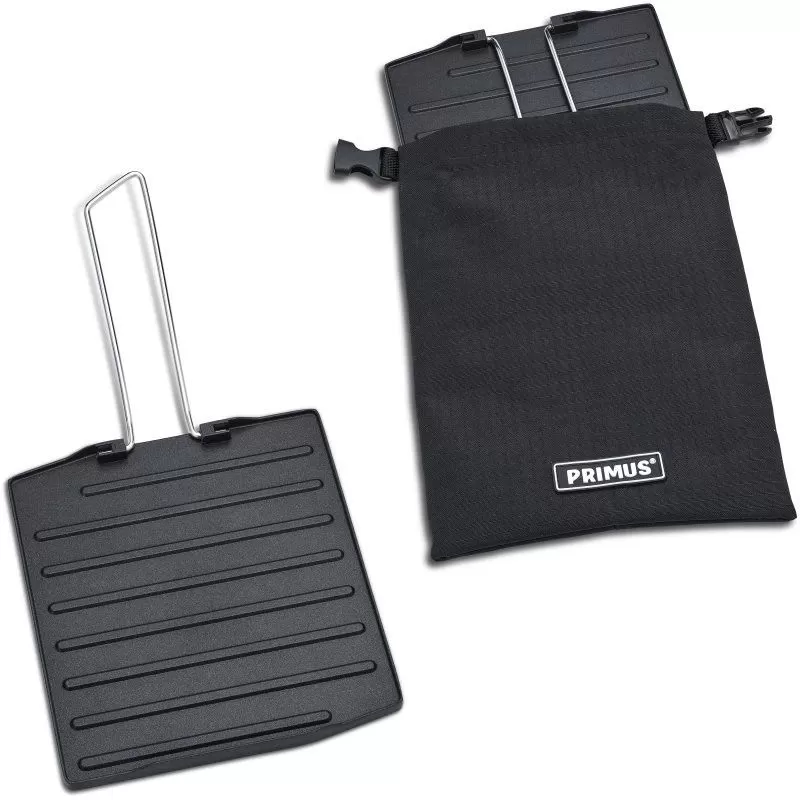 Déployée, la cuisinière Primus Tupike met à votre disposition 2 brûleurs indépendants (réglage indépendant de puissance de flamme jusque 3000 W pour cuisiner avec 2 casseroles en même temps si besoin), 2 protections latérales (contre les éclaboussures, contre le vent et contre les pertes thermiques) et 2 pieds ultra stables (rétractables). Très pratique, la grande poignée revêtue de bois de chêne sert à la fois à ouvrir la cuisinière, à la fermer et à la verrouiller mais aussi à la transporter à la main. Fermée, cette cuisinière Primus prend peu de place avec une hauteur de seulement 8,2 cm, une longueur de 47,5 cm et une profondeur de 29,5 cm. Son poids ne dépasse pas 4300 grammes. Elle peut donc constituer une excellente cuisinière de van, une bonne cuisinière de voyage et une bonne cuisinière de camping. Son nettoyage et son entretien s’effectuent très facilement : les supports de casseroles se retirent en quelques secondes pour pouvoir passer l’éponge partout sans difficulté. Inclus : bac d’égouttage en acier inoxydable et plaque antiadhésive de type plancha, grill & toast (plaque noire).