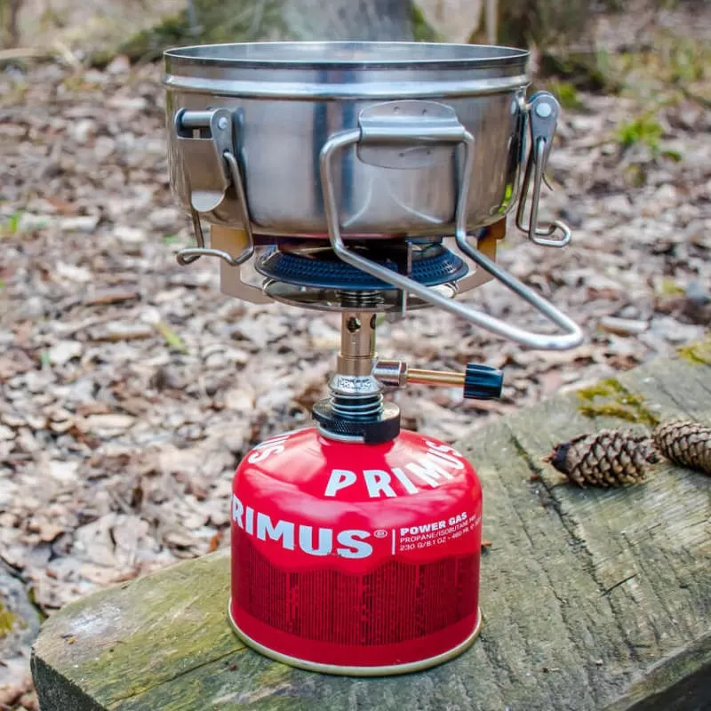 En choisissant un réchaud Primus Mimer Duo, vous réduisez au maximum le risque d’incompatibilité entre votre réchaud de trek et votre cartouche de gaz. De plus, vous êtes sûr d’opter pour un réchaud puissant (puissance : 2800 W et 10000 BTU/h) et capable d’accueillir des popotes de tailles différentes (1, 2 ou 3 personnes). Les supports de casserole sont suffisamment larges (et ils protègent également du vent). Cerise sur le gâteau, vous ne vous encombrez pas avec un réchaud de camping trop volumineux : le Mimer est compact (volume de rangement : 125 x 55 mm) et léger (poids : 257 grammes). En plus d’un support de casserole bien large pour plus stabilité (entre le réchaud et la popote) lors de la cuisson, le réchaud Mimer Stove Duo Primus possède une molette très précise pour un réglage fin de la puissance de feu. Concrètement, à puissance maximale, on peut porter à ébullition 1 litre d’eau en 3 minutes et 30 secondes. Note importante : comme pour l’ensemble des réchauds, la cartouche de gaz n’est jamais incluse (pour des raisons de sécurité).