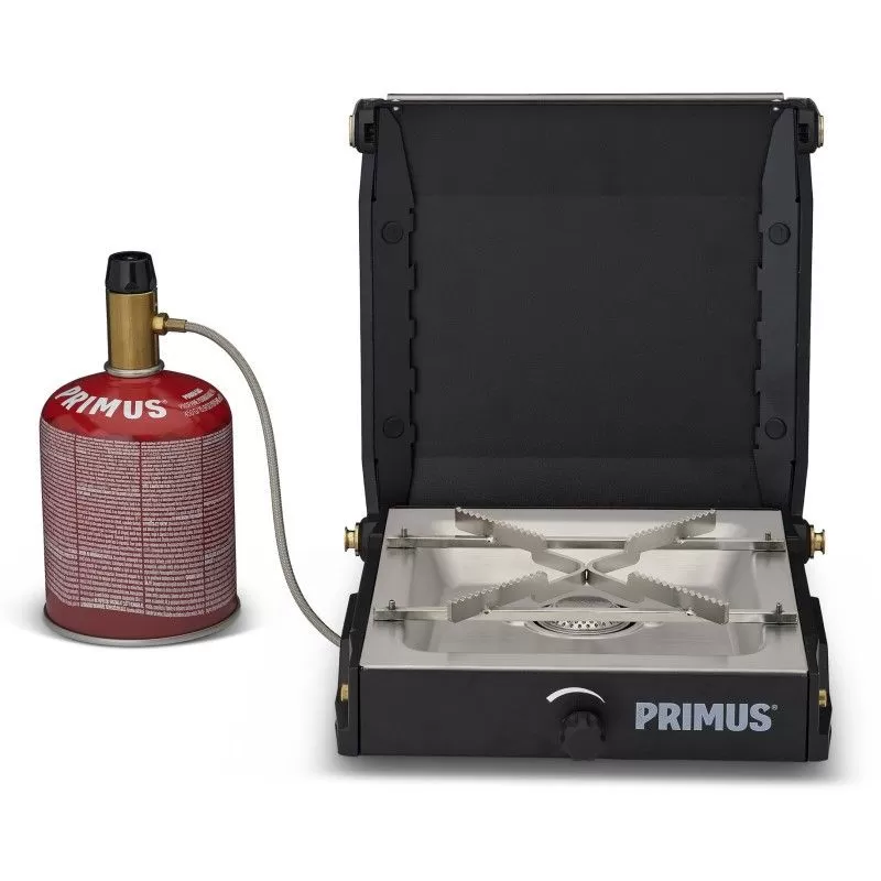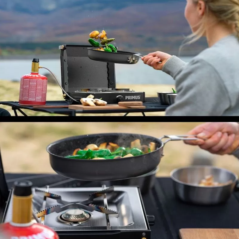 Facile à transporter ou à manipuler grâce à sa grande poignée, grâce à son système de verrouillage et à ses dimensions bien calibrées, le réchaud Moja Primus est le réchaud de voyage ou le réchaud de camping par excellence. Il passe dans n’importe quelle petite cuisine de bateau, dans n’importe quel van ou fourgon aménagé et il peut également rentrer dans un sac à dos de trek. Il peut aussi se retrouver au milieu de votre table de piquenique ou de votre salon de jardin : il est ultra polyvalent et il est partout à son aise. Son poids est de 2300 g et son format rangé est le suivant : 26,6 x 29,5 x 7,8 cm. Son entretien est extrêmement simple parce que ce réchaud Primus est pourvu d’un bac d’égouttage et parce que l’ensemble du support de casserole est amovible : ainsi, votre éponge peut passer partout et rapidement. Autre avantage : on peut contrôler très précisément la puissance de feu grâce au bouton de réglage en façade : faites mijoter tranquillement vos plats ou faites bouillir rapidement votre eau, c’est selon les besoins du moment. Compatibilité : le réchaud à gaz Primus Moja Stove est compatible avec toutes les cartouches de gaz possédant un pas de vis (ce pas de vis est standard).